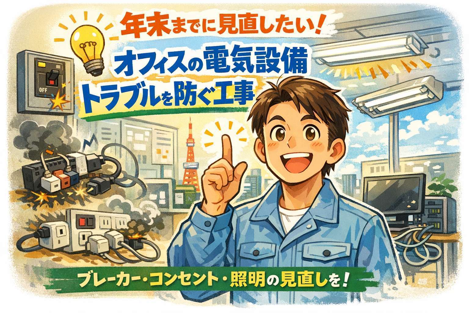 年末は電気設備トラブルが起こりやすい時期であり、オフィスの生産性に影響が出やすいタイミングです。